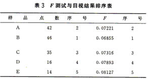 举例:某样品X=79.17,Y=84.99,Z=90.43分别代入式(2)、(3)中将x=0.3810,y=0.338,将x、y、z、x0、y0值代入式(1)中得F=0.1405,根据上述计算方法将A、B、C、D、E样品进行计算。测试结果与目视结果如表3。从表3可以看出F白度公式基本与观测者评价相符,为此选用该公式作为玻璃“白度”的定量评价标准。