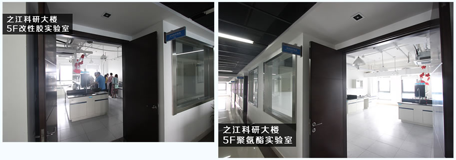 研发大楼为国家级实验室,一楼主要为中空玻璃实验室,拥有用于检测国标、欧标及美标的耐气候循环测试和耐紫外光辐照测试等,二楼为研发人员办公室,三楼为密封胶公共检测平台,四楼为建筑用胶研发层,五楼为工业用胶研发层..十楼为报告厅,可用于技术培训及研发交流。 研发大楼一共十层,主要功能为建筑用胶研发试验平台、工业用胶研发试验平台以及正在申请国家实验室认可的之江检测中心。
