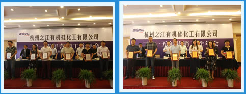 会议结束后,各区域代表参加了分组座谈会。之江 有机硅董事长兼总经理何永富、常务副总经理刘明亲 临分组座谈会,听取代表意见。