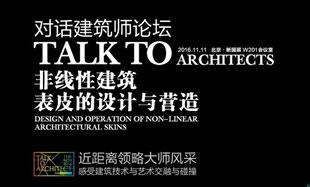 本届 “Talk to Architects 对话建筑师论坛”以“非线性建筑表皮的设计与营造”为主题。建筑师们将试图通过对非线性建筑表皮的概念、功能、内涵和构筑方式进行理性认识和综合分析,对当代非线性建筑表皮的分析和阐述,进而分析当代非线性建筑表皮的设计方法和材料表达。同时建筑表的设计也受到了复杂性科学的影响,有了新的跨越式的发展。非线性建筑表皮就是非线性建筑理论在建筑表皮设计上的具体应用。.....[详情] |