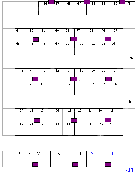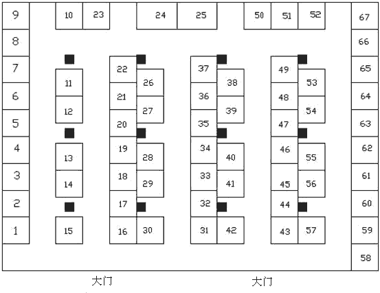 2. 图中■所示的为柱子,尺寸为1.06M X 1.06M.在所标的展位正中间; |