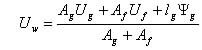 有框玻璃幕墙的热工性能用传热系数UW和遮阳系数SCW表征,由于边框的作用不可忽略,UW和SCW分别按下式计算