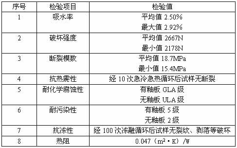 建筑材料测试中心依据国家相关标准的检测试验,其性能指标可达到下表所示(样板尺寸为:120×245mm)。