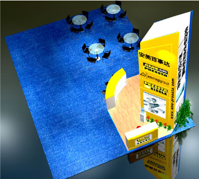 我们对展台装饰的要求很明确:“简单不简陋”。绝大部分的设计我们都不太满意,因为太复杂,但大家又不明白什么是我们要求的“简单”。现将我们在上海的5月和9月展台装饰设计介绍給大家: