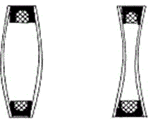 分子筛、玻璃品种等)的影响情况下,无论温度、风荷载、地震荷载引起的变形荷载,对中空玻璃的影响均表现为使中空玻璃产生凹凸现象,很多文章中描述的泵现象(如下图),使边部密封胶变形。