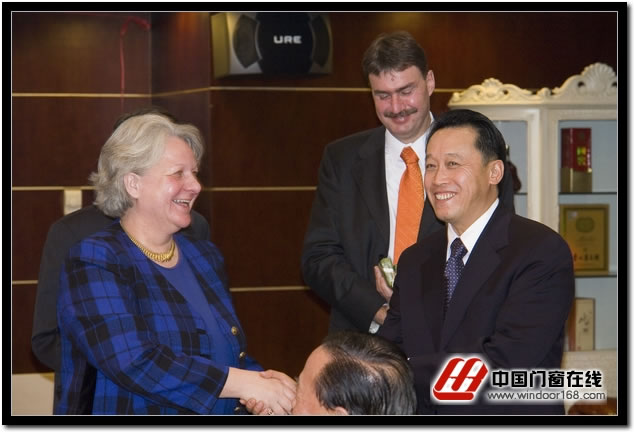 中国建筑金属结构协会会长 杜宗翰 接受德国纽伦堡展览公司 Bertold Braackemeier 经理 纪念品