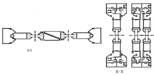 其设计基本原理是采用两扇窗的立框关闭后,受风压时,朝相反的方向弯曲变形,而使其产生内力平衡,使窗(门)的抗风压性能提高,通过实验证明可行,此方案是安全可靠的。