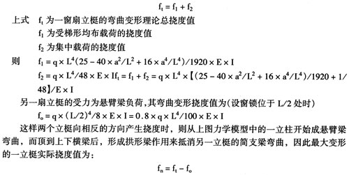 由于二扇窗(门)在风压作用下,一扇窗的立柱成简支梁弯曲,另一扇窗的立柱成悬臂梁弯曲,朝相反的方向弯曲变形(如图2示),相互得到内力抵消而自我平衡,从而保证了窗(门)的安全可靠。