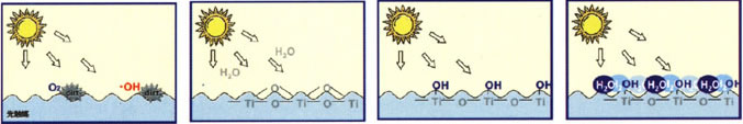 从光能引导出化学反应,促进有机物分解以及表现出超亲水性的环境亲和素材。