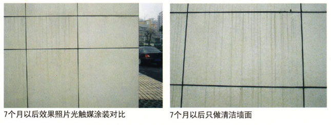现代城市污染问题已经严重影响到建筑物的表面清洁和美观,建筑幕墙使用少则两、三个月,多则半年其表面已蒙上污垢和灰尘。为了清除灰尘保持建筑靓丽,一直以来只用采用人工定期清洗的方法。人工清洗的维护费用较高、清洗时化学洗涤剂带来环境污染、清洗时高空作业安全问题突出,而中韩技术合力打造的西铝光触媒