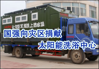 日前,国强五金集团投资30余万元研制了一款面向农村人口和野外施工队伍的太阳能洗浴中心,并于6月18日启程送往四川灾区,以支援那里的灾后重建工作。[