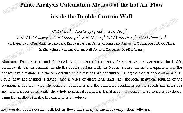 :双层幕墙;强迫送风;有限分析法;计算模型;实验。