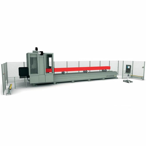 该设备配有86位工具库,各刀具库可以包括2个角型工具和1个铣刀,可对工件的5个面进行加工。另外,还配有移动式的工作台,使上下料操作方面并扩大可加工的断面。