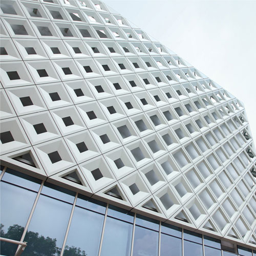 该项目A地块主体采用框架核心筒结构,外围为15根钢管混凝土叠合柱,内侧为框架剪力墙核心筒(词条“核心筒”由行业大百科提供),地下室部分采用框架结构。外形方面,主塔整体造型设计独特,外形呈弧形设计,外立面全部采用全隐框落地式玻璃幕墙系统,转角处采用双曲面造型。