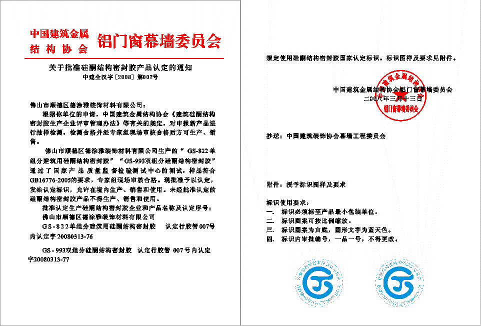 国家结构胶生产认定企业