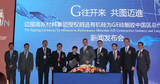日前,迈图高新材料集团与上海朗进有机硅有限公司在广州举行联合新闻发布会。会上,迈图高新材料集团宣布授权上海朗进有机硅有限公司为GE建筑硅胶中国地区总经销商,双方举行了签约仪式。