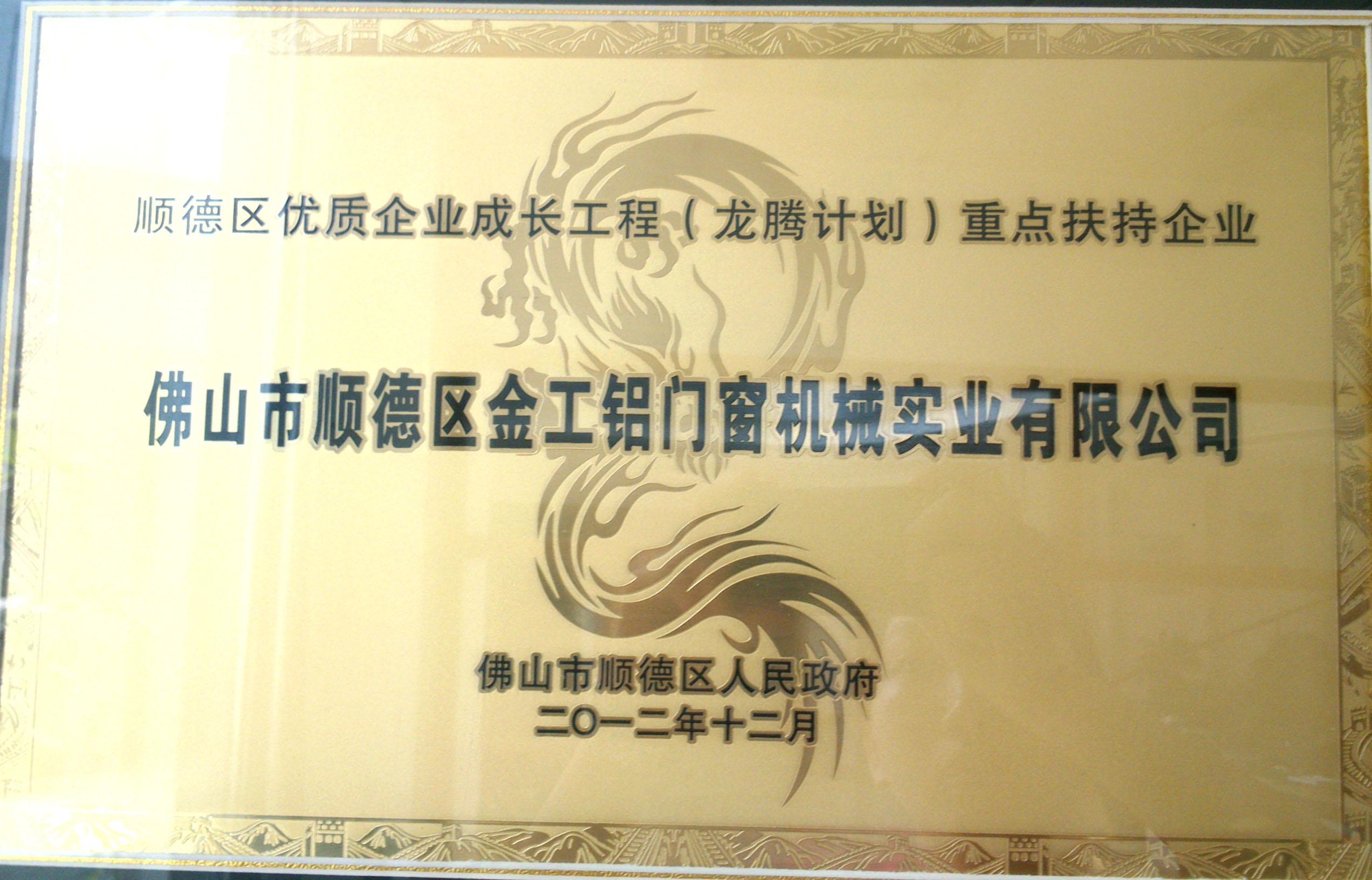 顺德区优质企业成长工程(龙腾计划)重点扶持企业 |