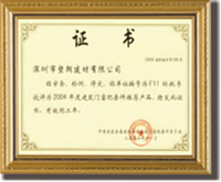 编号为N201的执手被评为二○○四年度建筑门窗推荐产品 |