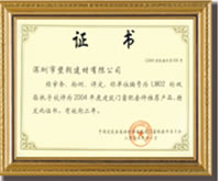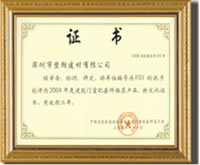 编号为501 的执手被评为二○○四年度建筑门窗推荐产品 |