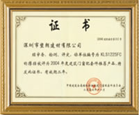 编号为KLS1225FC的撑挡被评为二○○四年度建筑门窗推荐产品 |