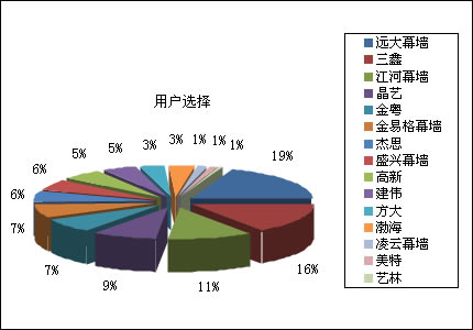 | 中国幕墙网大型读者调查活动,已于2007年3月15日圆满结束。通过开展此次调查活动,不仅增进了中国幕墙网对行业读者群的了解,同时,借助对选票的统计分析,产生了行业内包括“密封胶”、“玻璃”、“型材”、“设备”、“幕墙”、“配套件”六个类别的市场占有及读者首选排名情况。市场表现:来源于调查参与者所正在使用的产品品牌,间接反映市场中该产品的市场占有率;用户选择:来源于调查参与者所喜爱或赞同的产品品牌,间接反映市场中该产品的品牌影响力和用户认同度。 为了更加精确的反映出六类品牌,在全国各地区销售市场的现实状况,为广大读者,消费者、采购者提供权威的品牌选用、采购指南。特将选票进行了进一步分类统计,因而得出“中国幕墙网大型读者调查 区域性分析图解”。 以供广大行业人士查阅。相关数据:本次活动总有效票数: 15313票 |