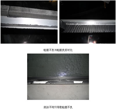⑥环境温度低,导致初始粘结速度慢,或者养护时间短,割胶检测时表现不粘接。解决方法:提高使用和养护环境温度(尤其是单组份)。