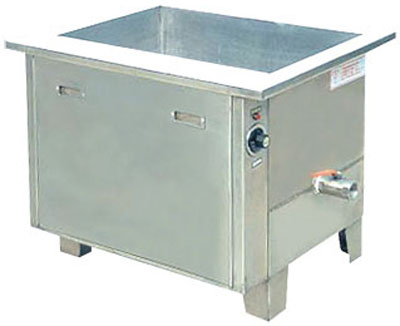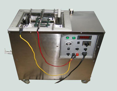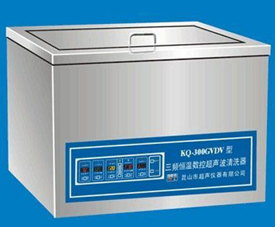 超声波清洗机由超声波换能器、超声波清洗槽和超声波发生器部分构成。超声波清洗机槽用坚固弹性好、耐腐蚀的优质不锈钢制成,底部安装有超声波换能器振子;超声波发生器产生高频高压,通过电缆联结线传导给换能器,换能器与振动板一起产生高频共振,从而使超声波清洗机清洗槽中的溶剂受超声波作用对污垢进行洗净。