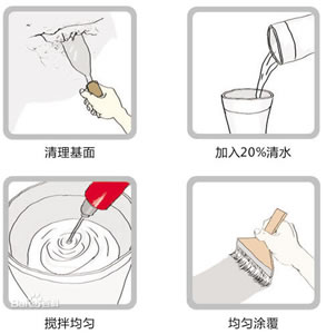 5、冷施工,操作安全,施工方便,可直接喷、涂、刷、刮在墙面上。
